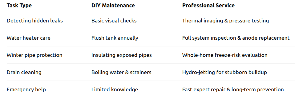 Comparison Table: DIY vs. Professional Seasonal Plumbing Maintenance